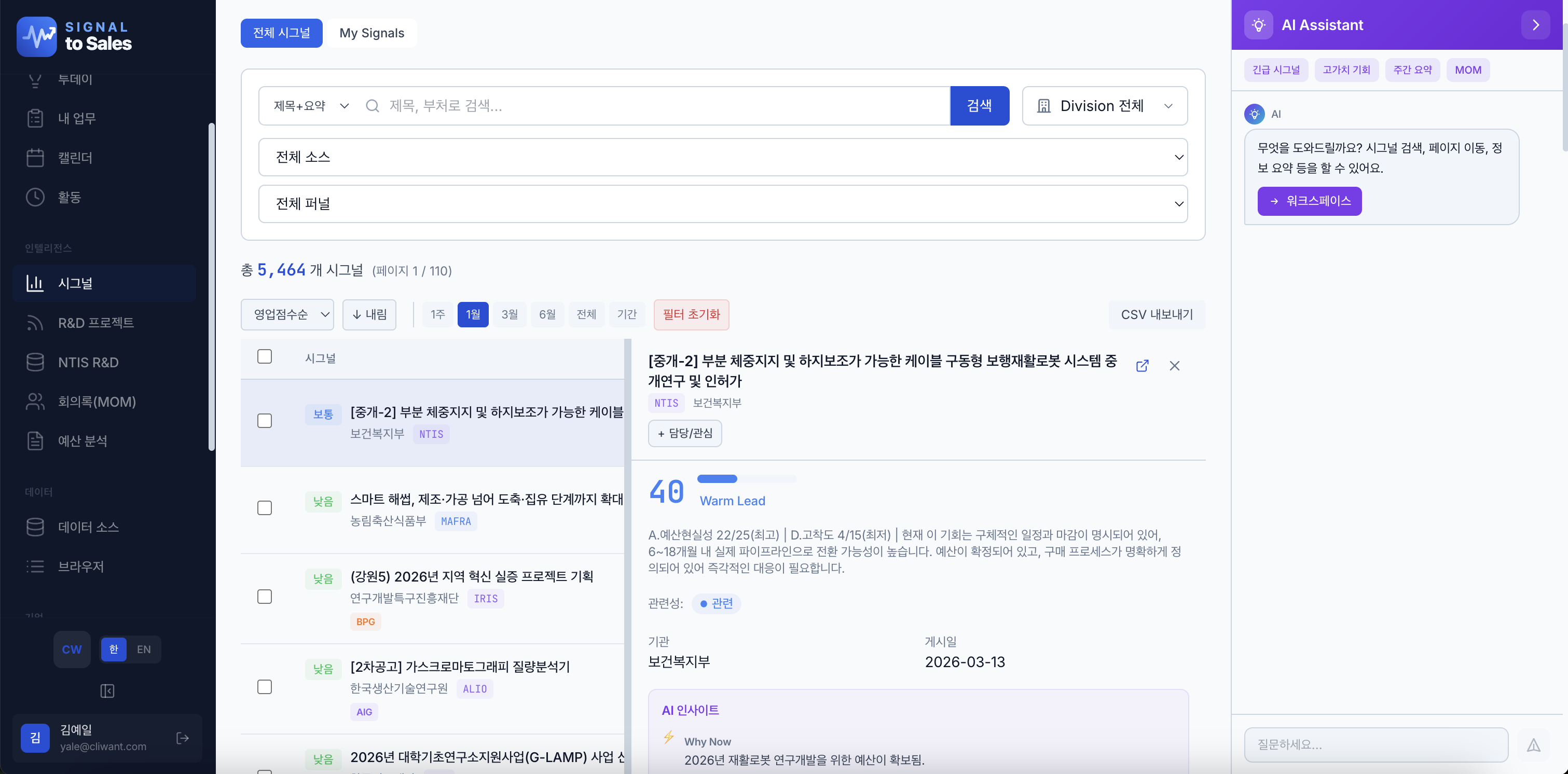 보이지 않던 시그널을 가장 먼저 포착하는 AI 세일즈 인텔리전스 플랫폼